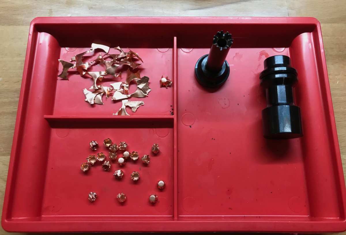 After the cap maker came in I punched out about 100 cups. I am able to do so by hand but it's much easier using a mallet.